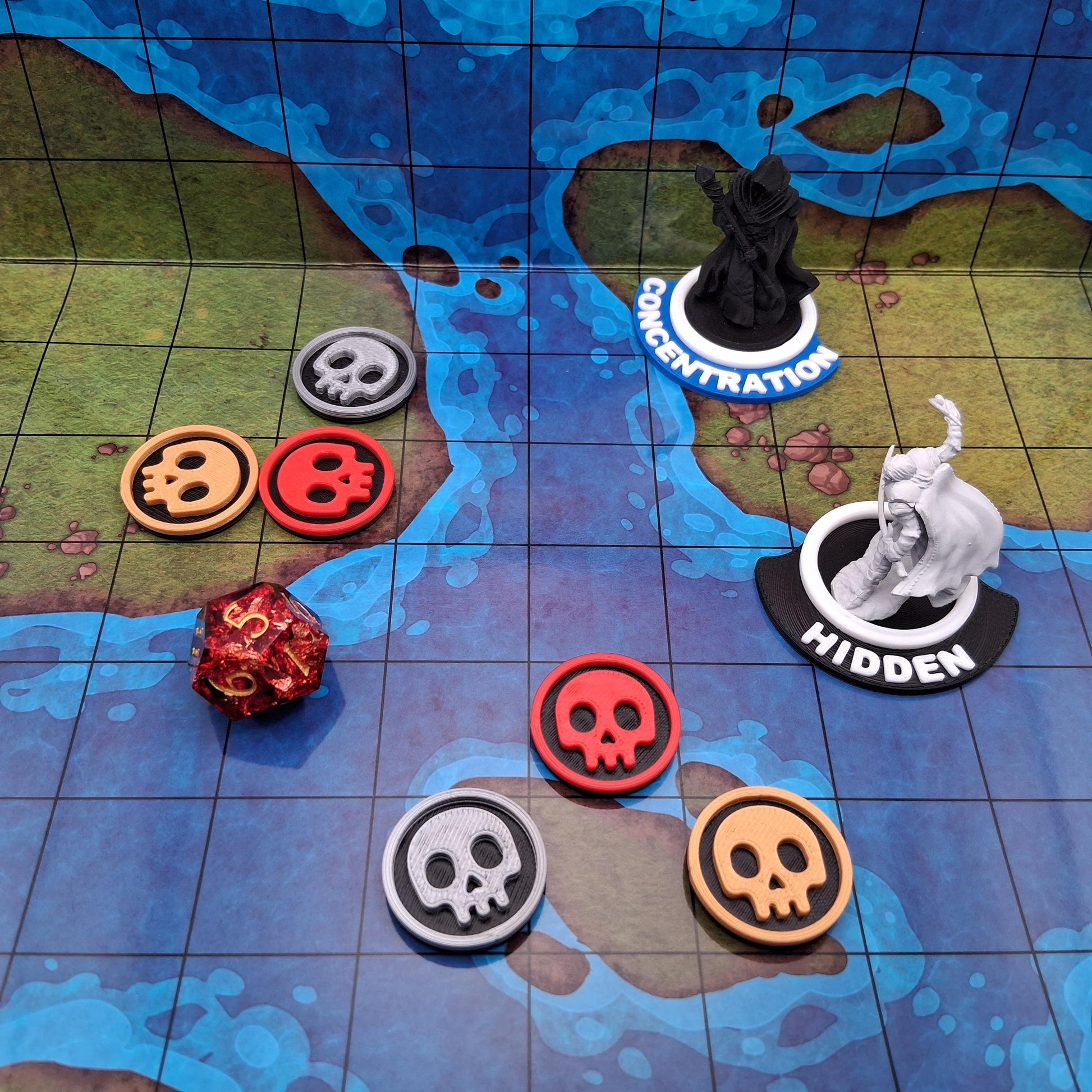 The tokens are made of durable PLA for years of gameplay. Additionally, they can be used to mark traps and other situations during the session. Try it out for Dungeons and Dragons, Pathfinder, and other TTRPGs!